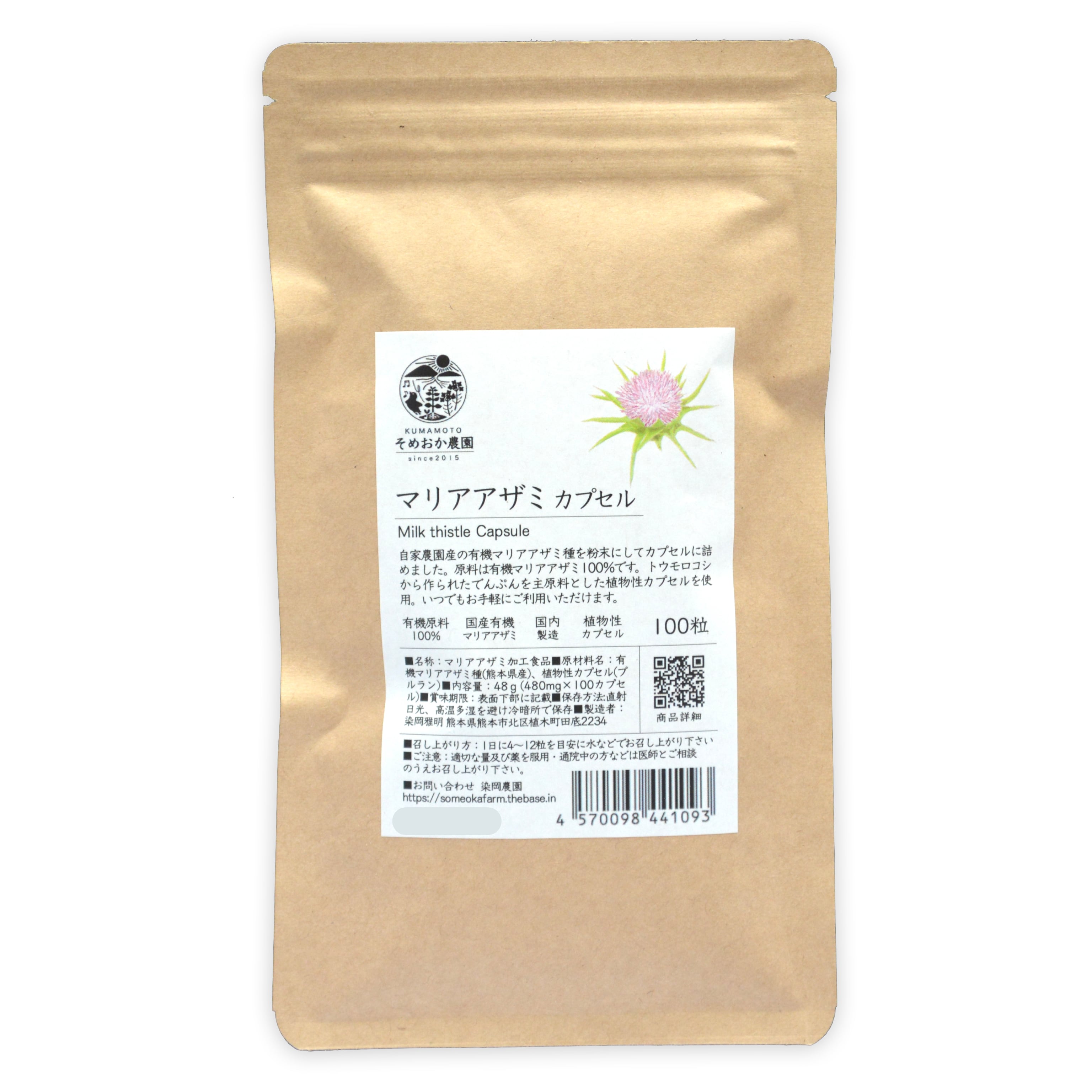 ■原材料名 : 有機マリアアザミ種(熊本県産)、植物性カプセル(プルラン)